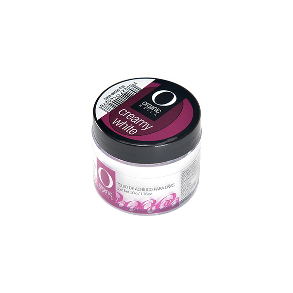 Polvo de acrílico sólido de tonalidad blanco tenue cremoso.