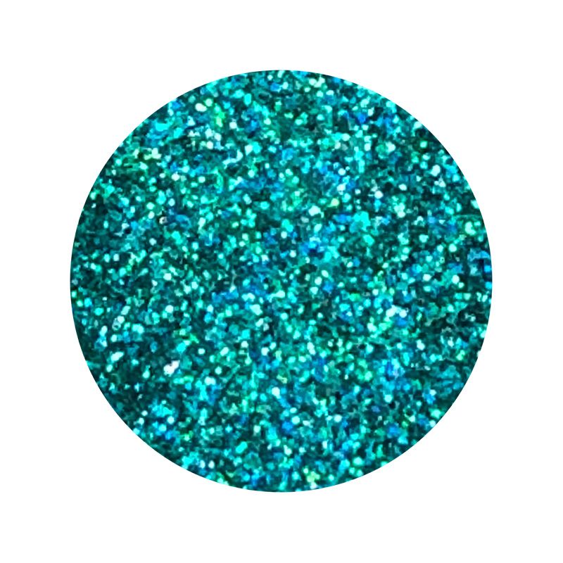 Polvo holográfico micropulverizado brillante de base completamente sólida y tridimensional, que refleja más de de dos colores en un angulo de 360°. Tamaño: 6 gr.