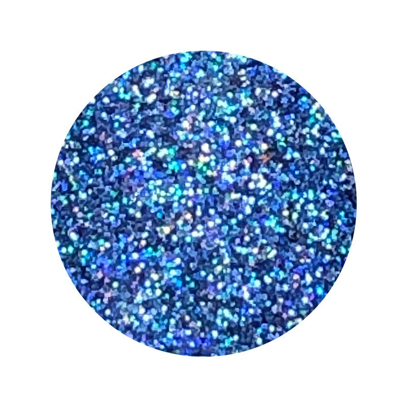 Polvo holográfico micropulverizado brillante de base completamente sólida y tridimensional, que refleja más de de dos colores en un ángulo de 360°. Tamaño: 6 gr.