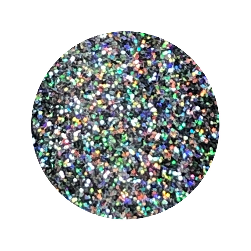 Polvo holográfico micropulverizado brillante de base completamente sólida y tridimensional, que refleja más de de dos colores en un ángulo de 360°. Tamaño: 6 gr.
