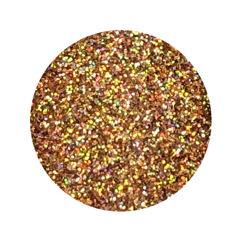 Polvo holográfico micropulverizado brillante de base completamente sólida y tridimensional, que refleja más de de dos colores en un ángulo de 360°. Tamaño: 6 gr.