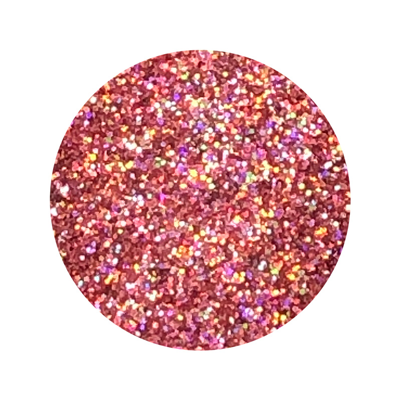 Polvo holográfico micropulverizado brillante de base completamente sólida y tridimensional, que refleja más de de dos colores en un angulo de 360°. Tamaño: 6 gr.