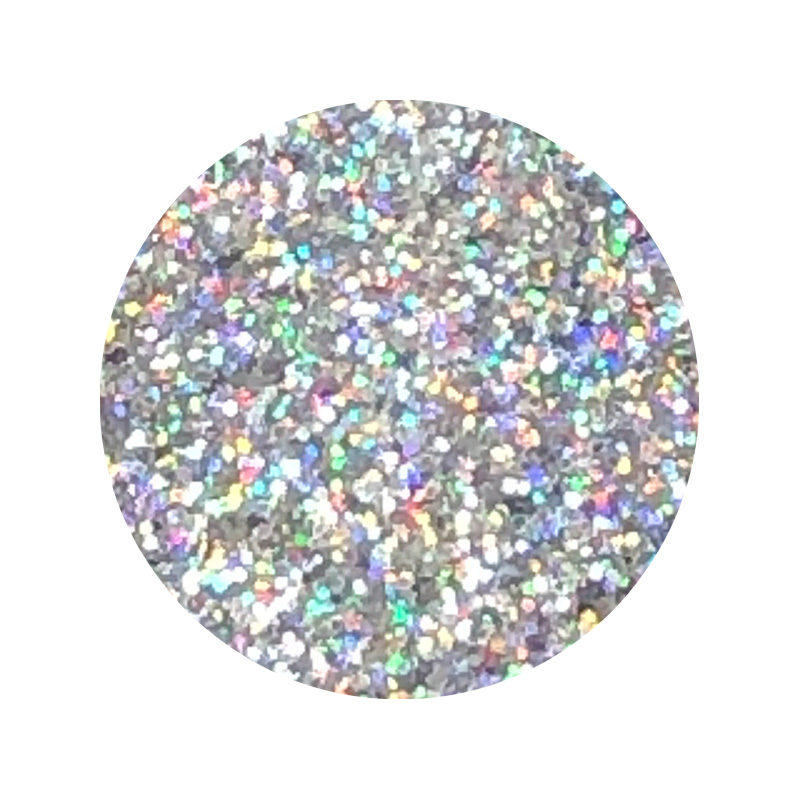 Polvo holográfico micropulverizado brillante de base completamente sólida y tridimensional, que refleja más de de dos colores en un ángulo de 360°. Tamaño: 6 gr.
